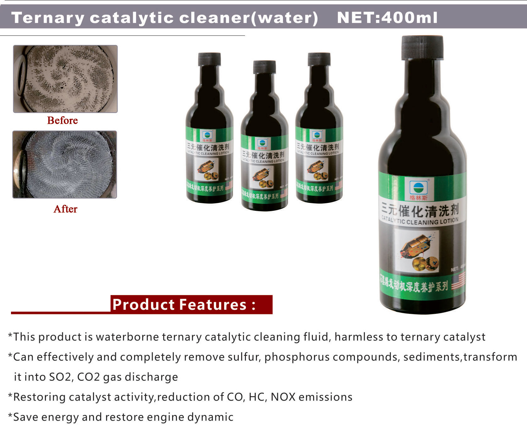 1)This product is waterborne ternary catalytic cleaning fluid,harmless to ternary catalyst